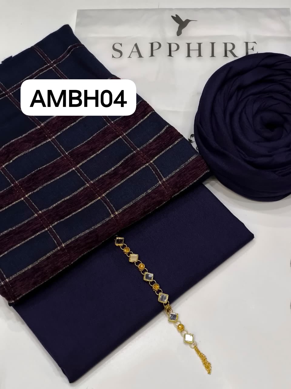 New Saphire  3pc Winter  Collection 2025 Stuff Wool Plain Shirt And Trouser With *beautiful touch velvet shawl borders with tilla work all over pure 72/2 premium quality  3PC Dress 3 Meter Shirt  (Wool)2.5 Meter Trouser (Wool)2.5 Meter Shawl( Wool)