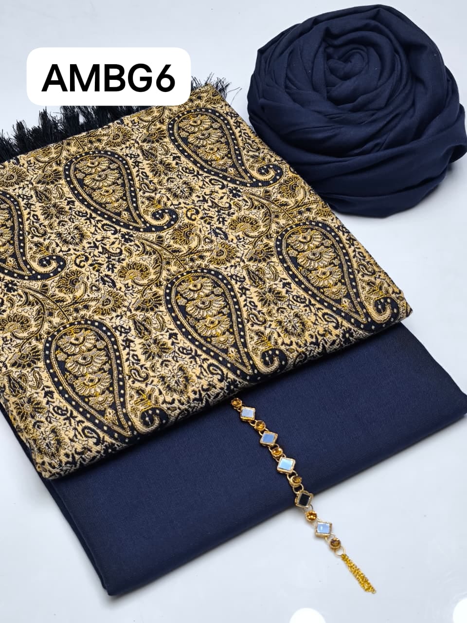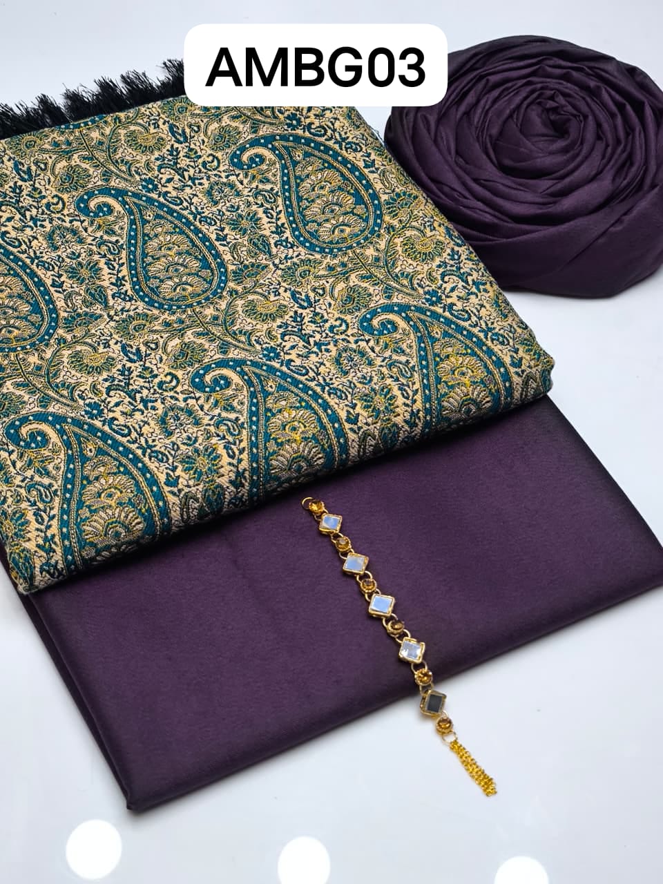 Heavy Winter New Turkish Collection  2025😍 STuff Dhanak Plain Shirt And Trouser With Double toon Turkish shawl 4 sided border Shawl 3PC Dress 3 Meter Shirt  (Dhanak)2.5 Meter Trouser (Dhanak)2.5 Meter Dupatta(Dhanak)