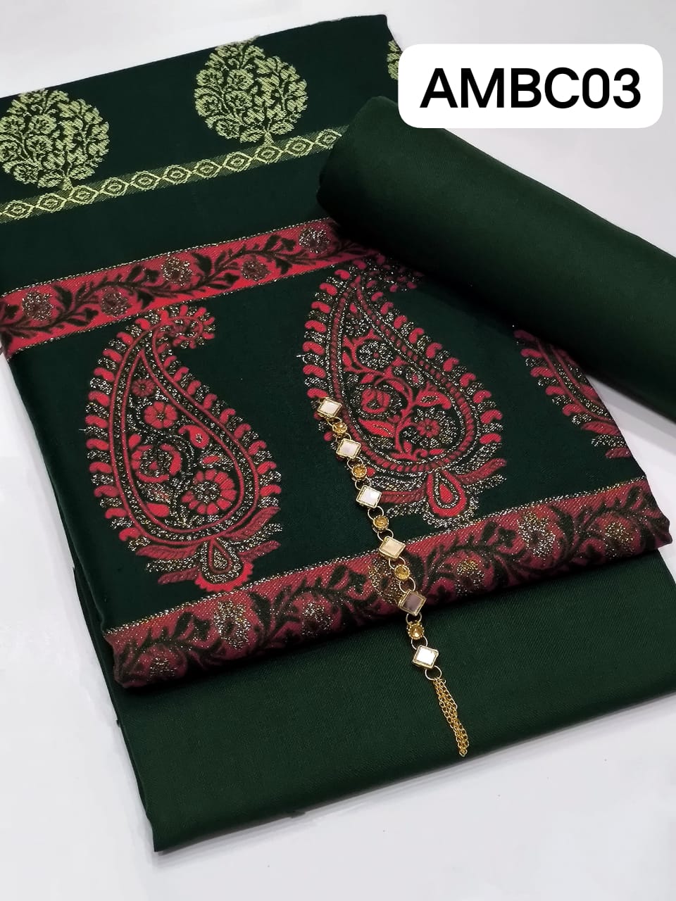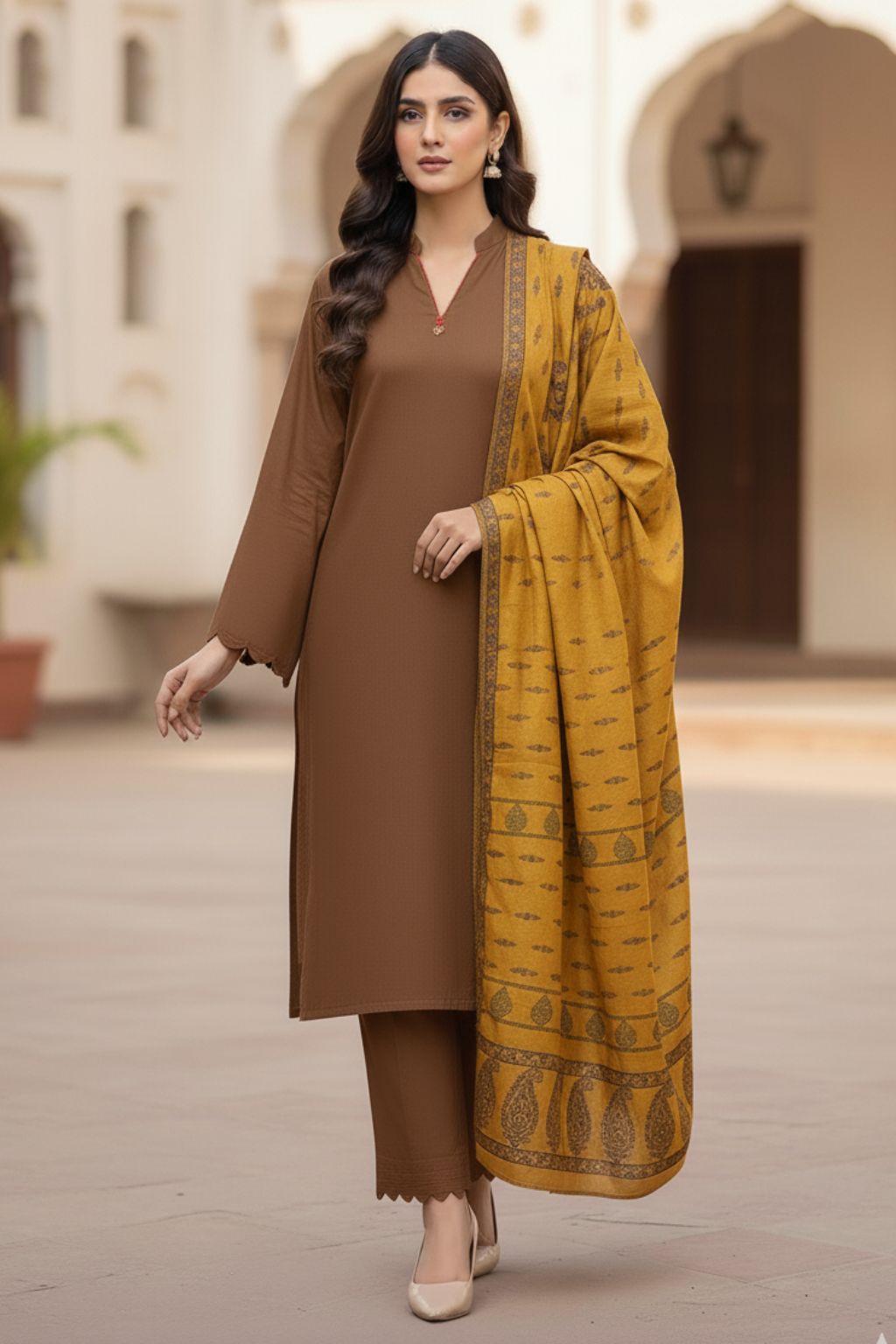Stuff Wool Plain Shirt And Trouser With Wool Beautiful Heavy broshia and tilla Jacquard work Shawl 3PC Dress