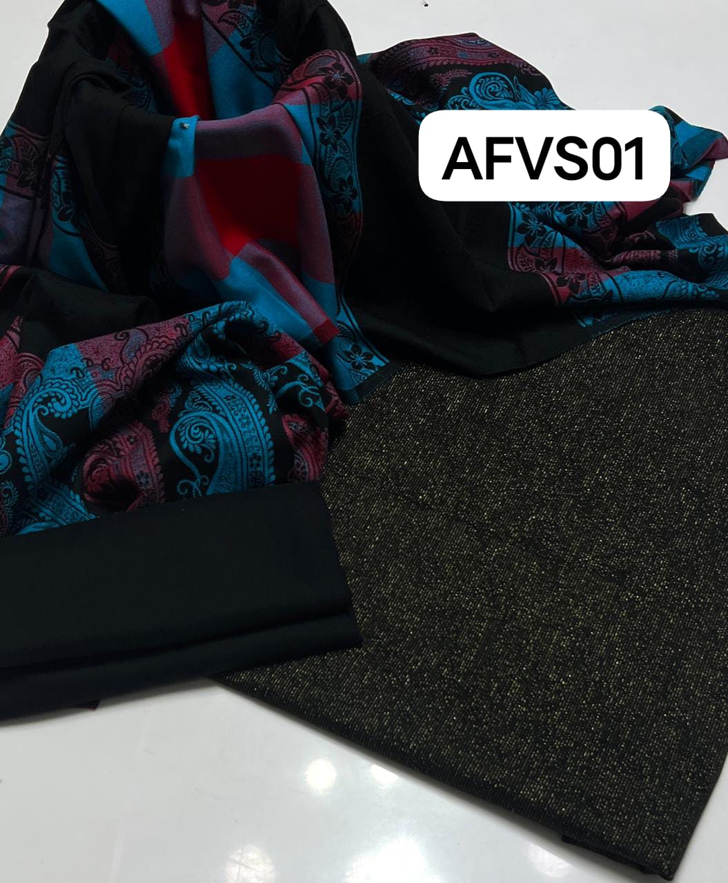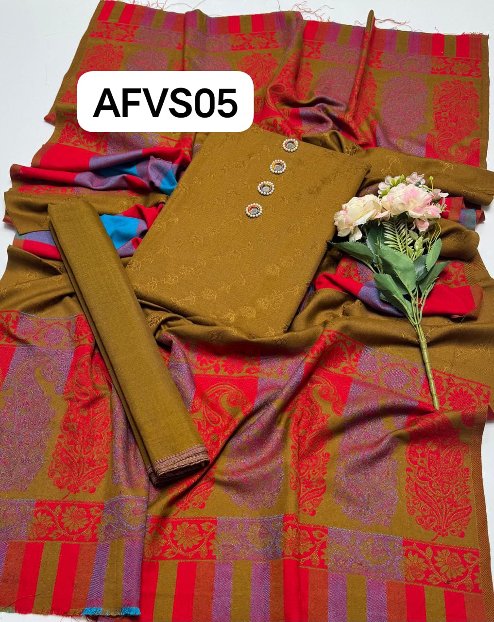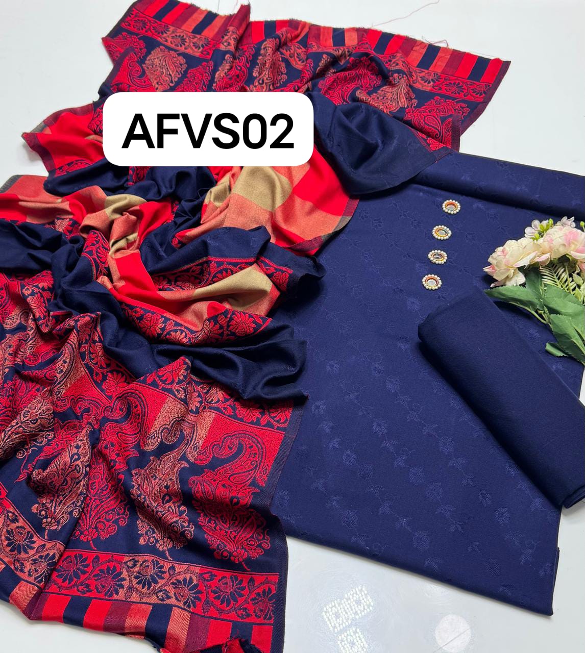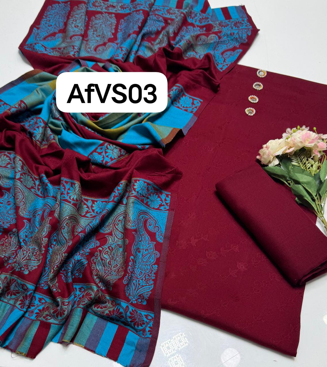 Winter Stuff ❄️ 🌸 Fabric : Marina self jacard plan shirt with plan trouser along with jacard style shawl 3pcs Dress